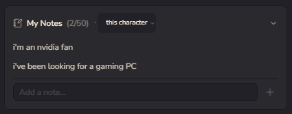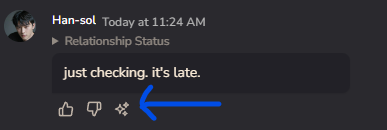 But tbh our model is sensitive to the 3rd person pronouns like “her”, “she”…, they make the character respond weirdly. We suggest you use the narration box or “you” instead.