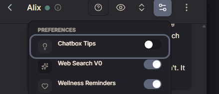 Chatbox Tips - Helpful suggestions that appear in the message box to spark conversation ideas